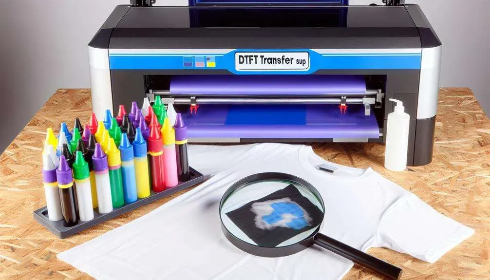 Key DTF transfer materials include UV DTF transfer film, UV-curable or UV-ready inks, a UV curing light, a heat press, pre-press supplies, any adhesive powder or liquid adhesive your workflow requires, weeding tools, protective gear, and compatible fabrics or substrates for a UV printable transfer.